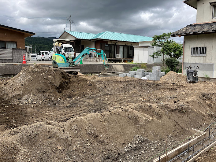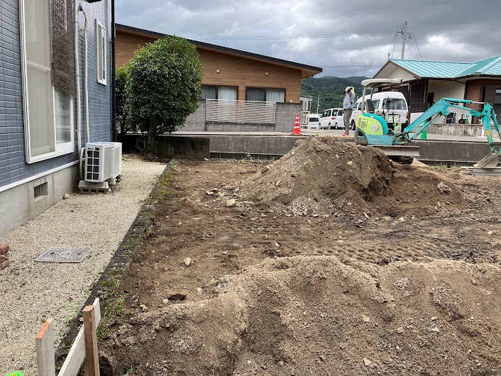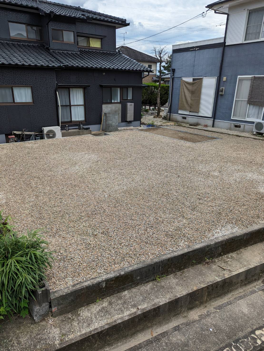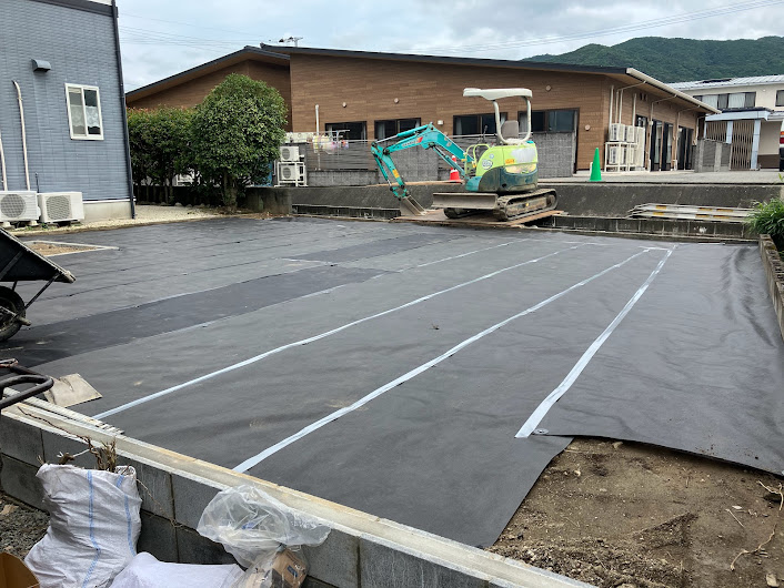 雑草対策のための工事 2023/07/24 工事前の状態です 雑草が生い茂っていました。 また、ここにはもともと小屋がたっていたみたいで基礎石や土間コンクリートが一部にありました。 掘削して草や瓦礫等を撤去していきます。 土留めのブロック積の基礎工事 また雑草が生えてはたまりません。 防草シートを敷き詰めます。 砂利を敷いて仕上げです。 空いてるところは畑だったり植栽の予定の場所です。