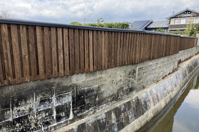 板塀の施工です。 30mくらいあります。